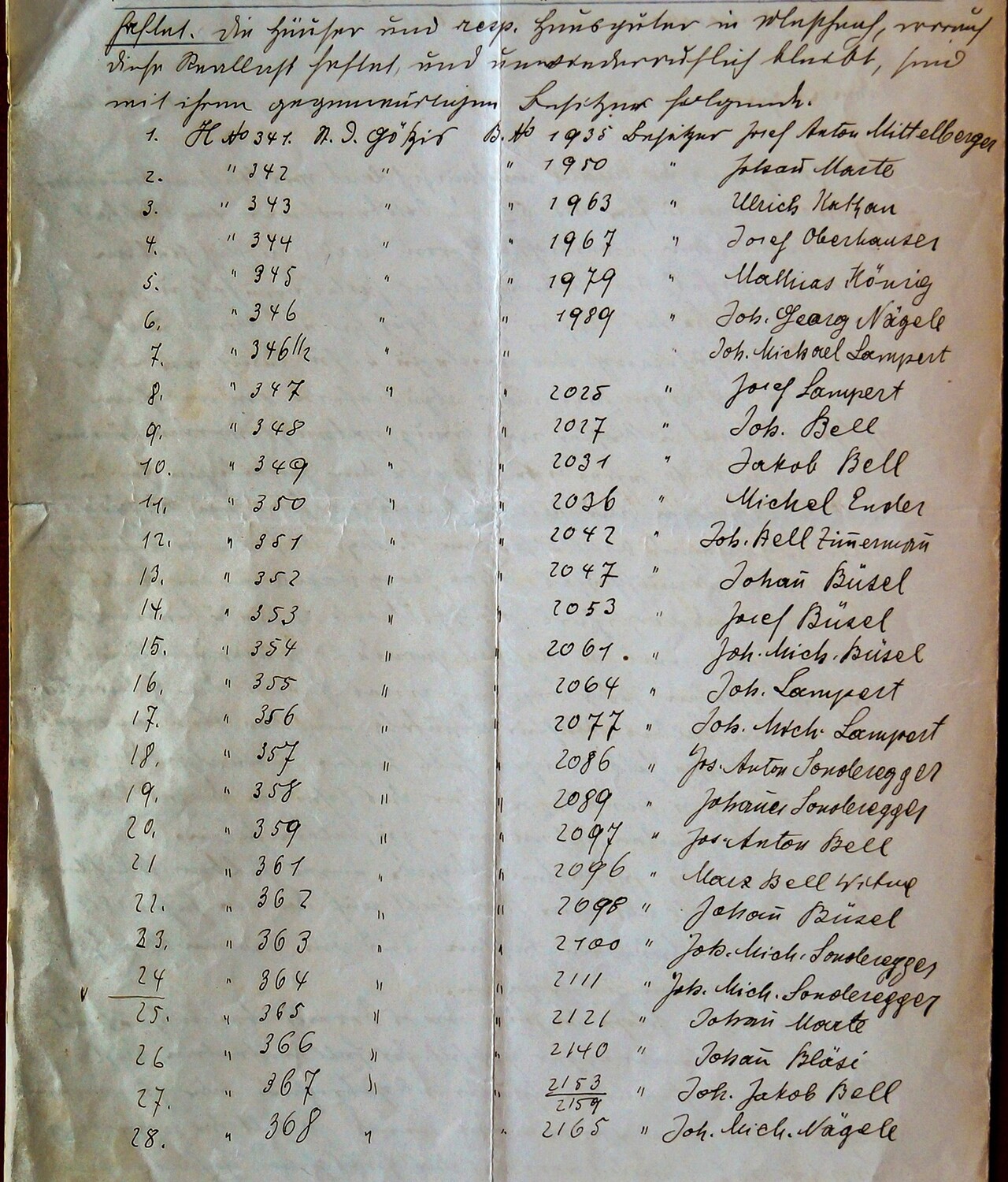„Die Häuser und resp. Hausgüter in Meschach, worauf diese Reallast haftet, und unwiderruflich bleibt, sind mit ihrem gegenwärtigen Besitzer folgende:“