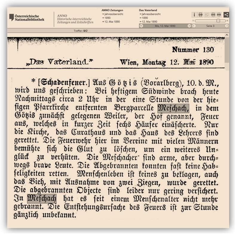 Schon 6 Wochen später, am 10. Mai 1890 brach in diesem Haus ein Feuer aus, das bei heftigem Föhnwind schnell 6 Wohnhäuser