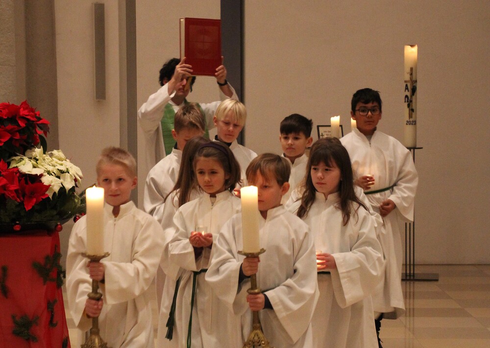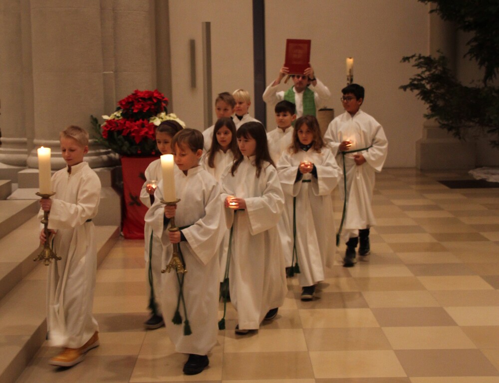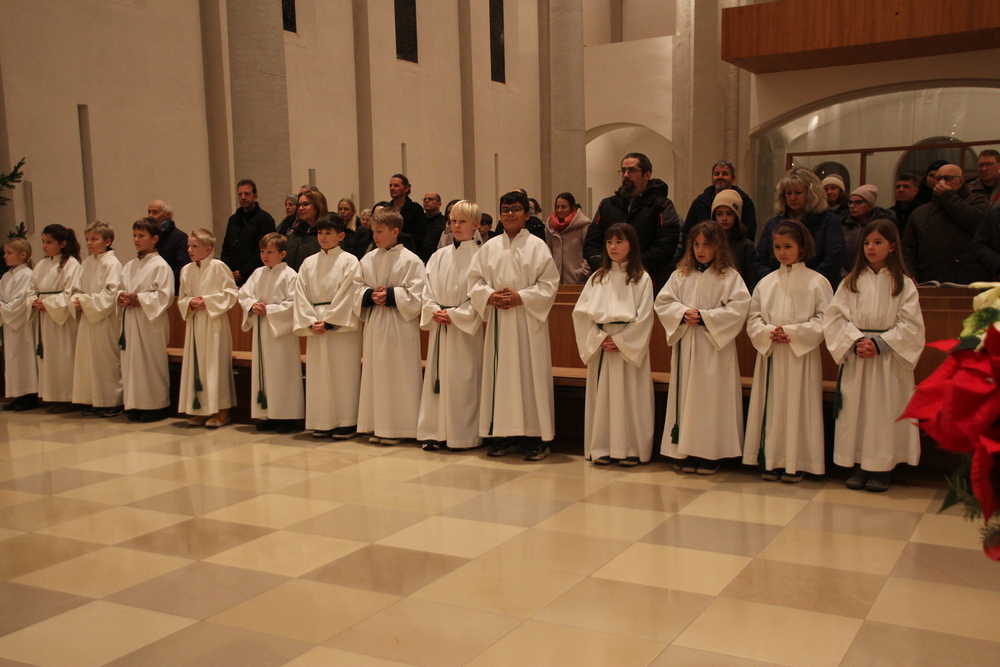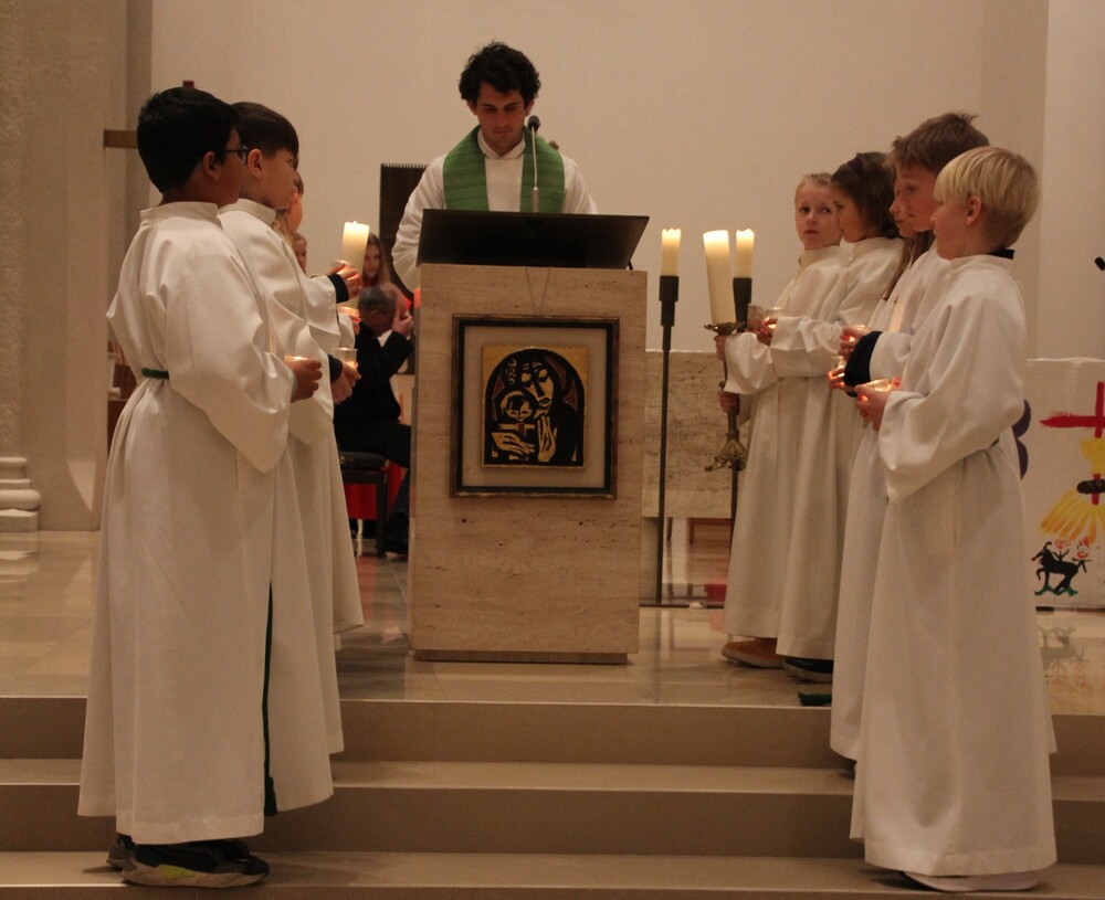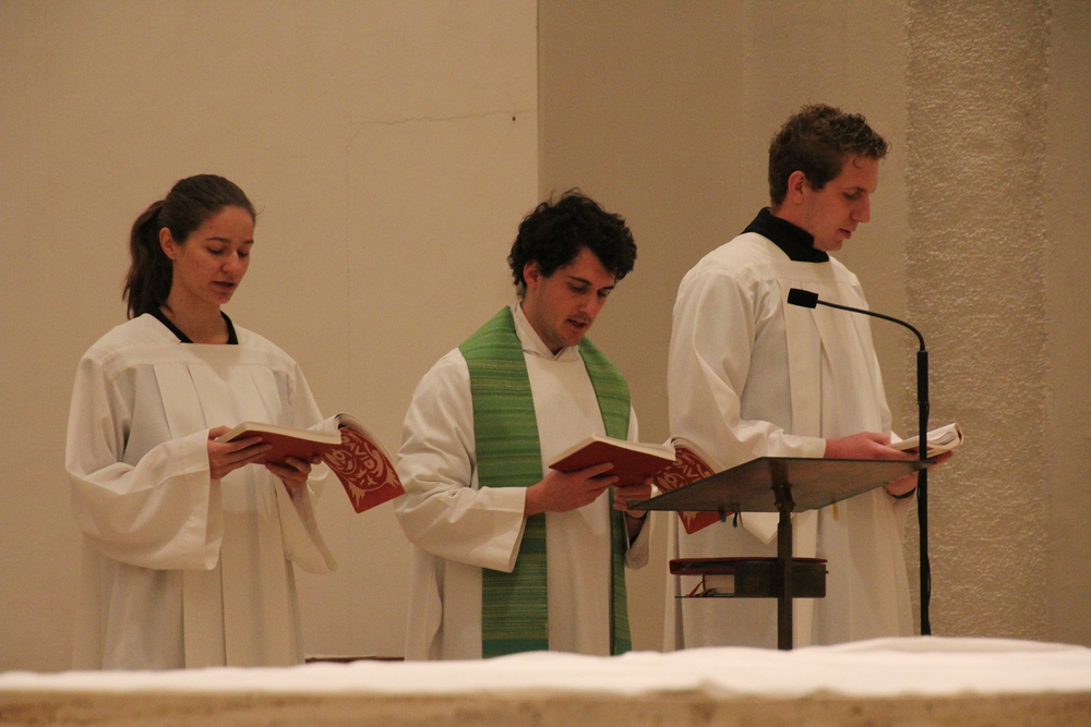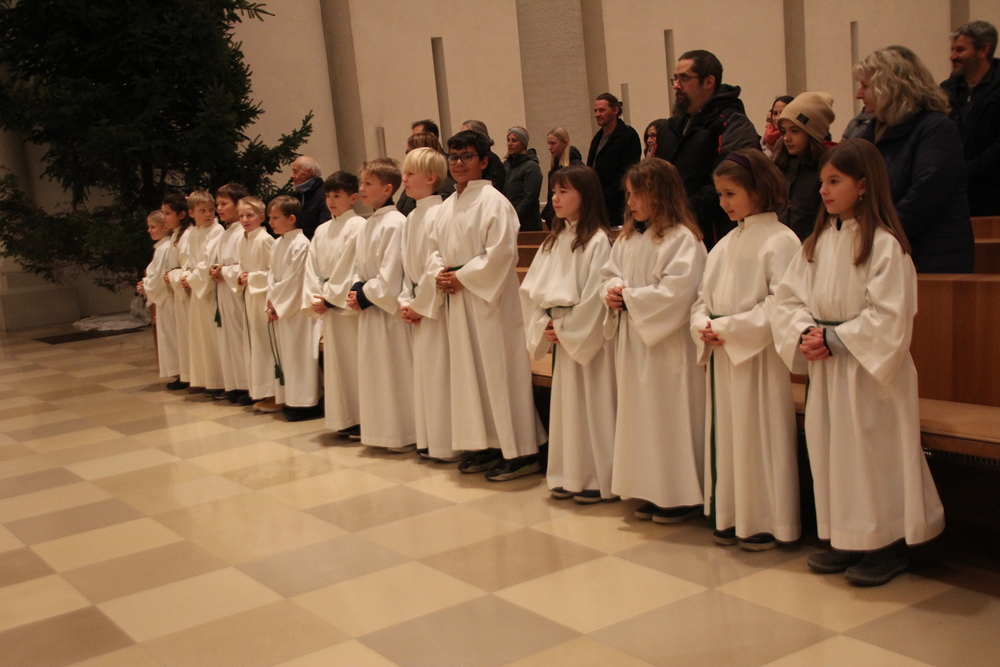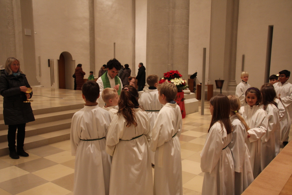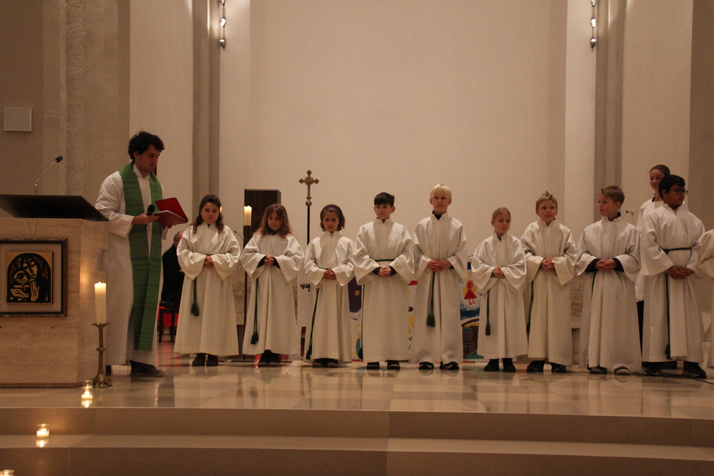 In der Mitte befindet sich die Eucharistie und die Gemeinschaft in Familie und Bekanntschaften. Ebenso sind die Musik und die Natur Orte, an denen sie religiöse Erfahrungen sammeln. Weihnachten nimmt auf dem Tuch den größten Platz ein: Hier machen wohl alle eine Erfahrung von „Himmel“. So fließen die eigenen, wertvollen Glaubenserfahrungen in die Gruppe mit ein und bereichern diese. Das Ministrieren wird dadurch nicht nur zum schalen Dienst, sondern spiegelt das eigene Leben wieder.