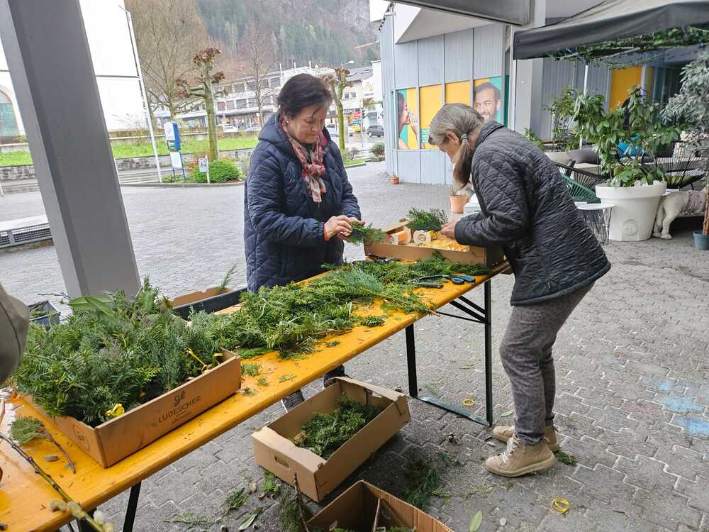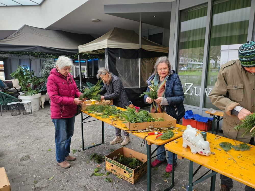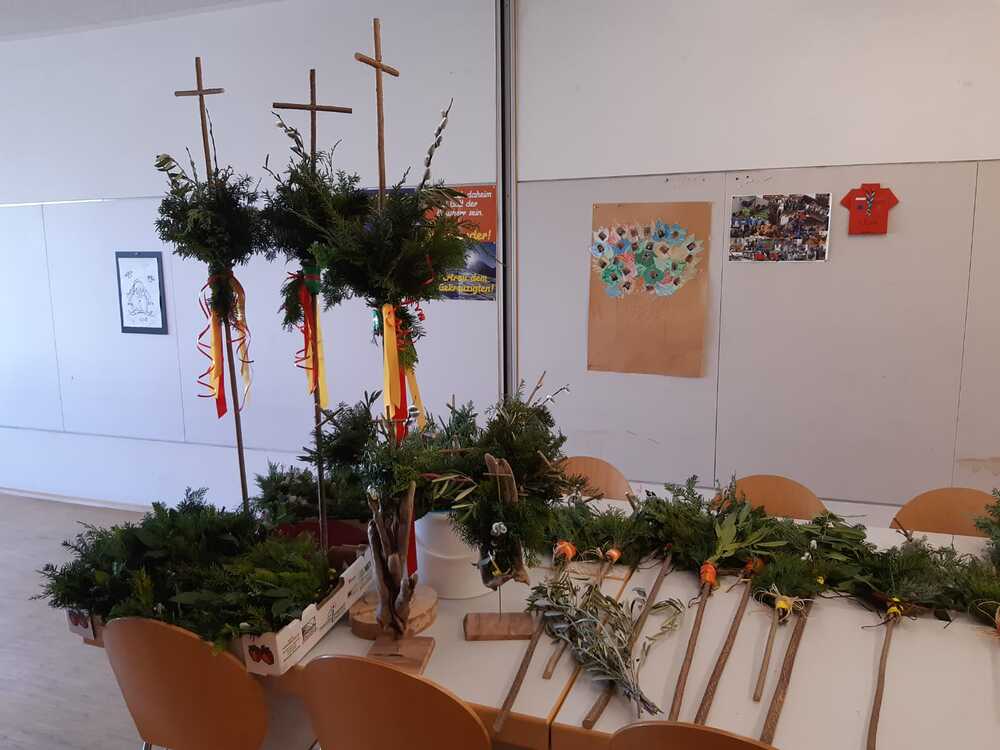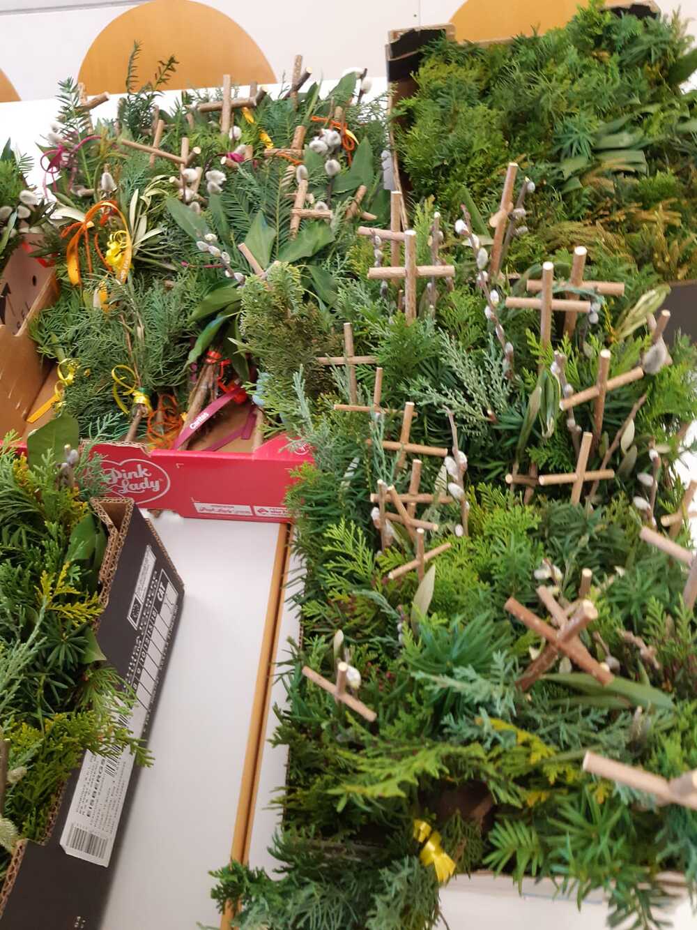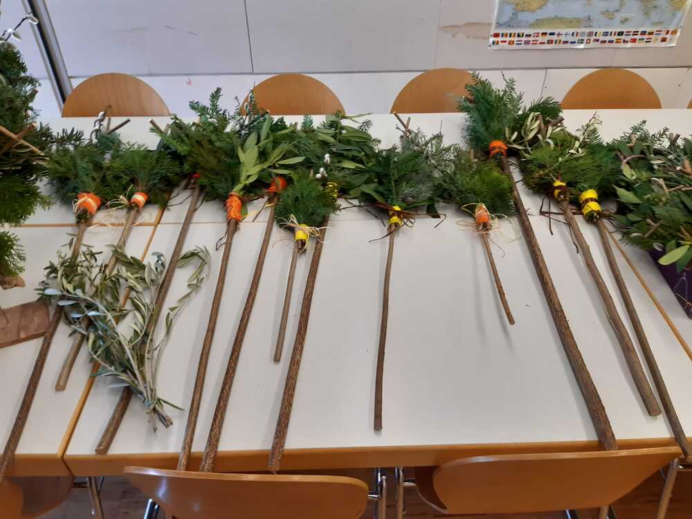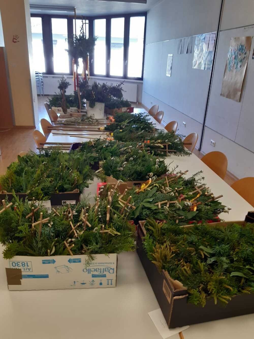 Liebevoll wurden auch heuer wieder die "Zutaten" für die Palmbuschen bereit gestellt und gekonnt zu prachtvollen Exemplaren geformt.