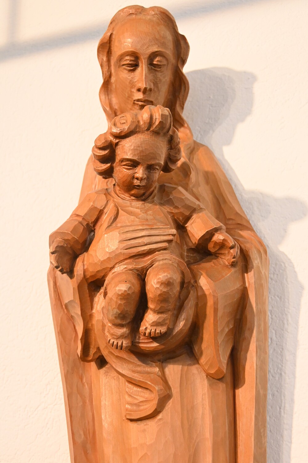 Auf Initiative von Heimseelsorger Matthias Nägele wurde für diese Kapelle mit Maria eine passende Kapellenpatronin gefunden. Neben der Marienstatue sind in den Tabernakelbildern in den von Josef Hofer gestalteten Holzschnitten 4 Marienszenen dargestellt. Immer wieder gehen viele Menschen mit ihren Anliegen und Sorgen zur „Himmelmama“. So war es naheliegend, diese Kapelle unter den Schutz der Mutter Gottes zu stellen.