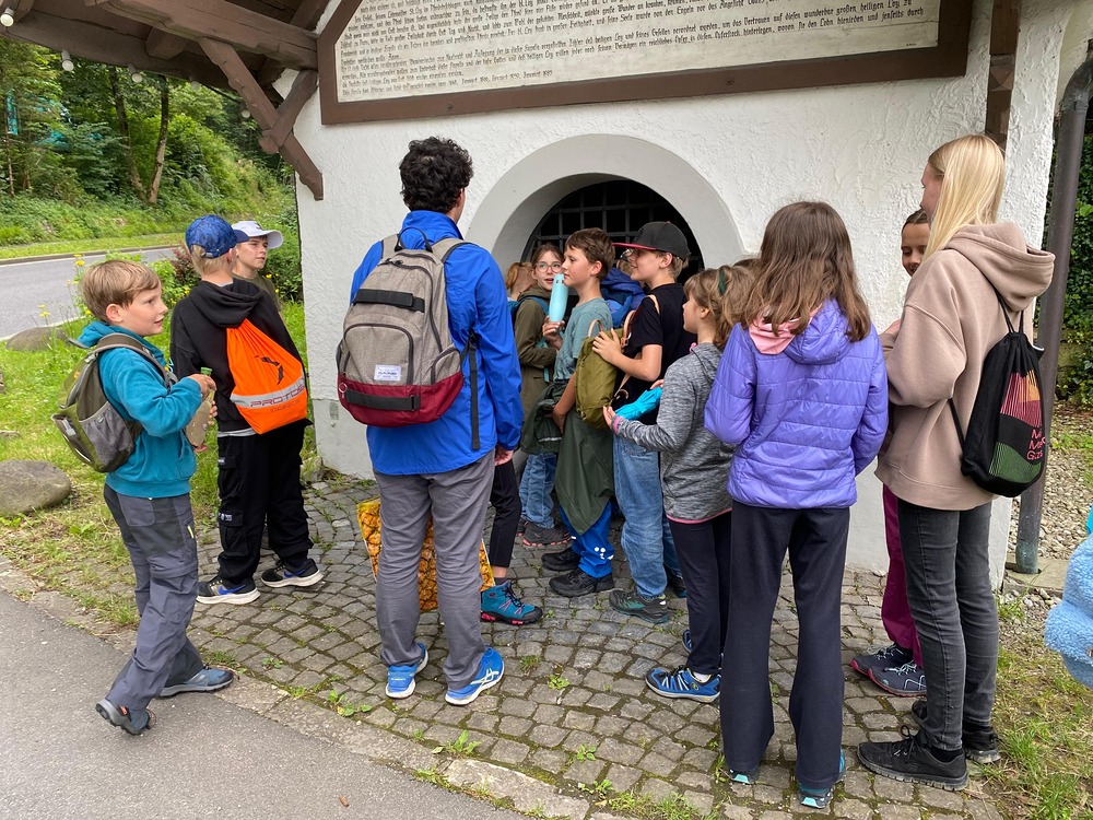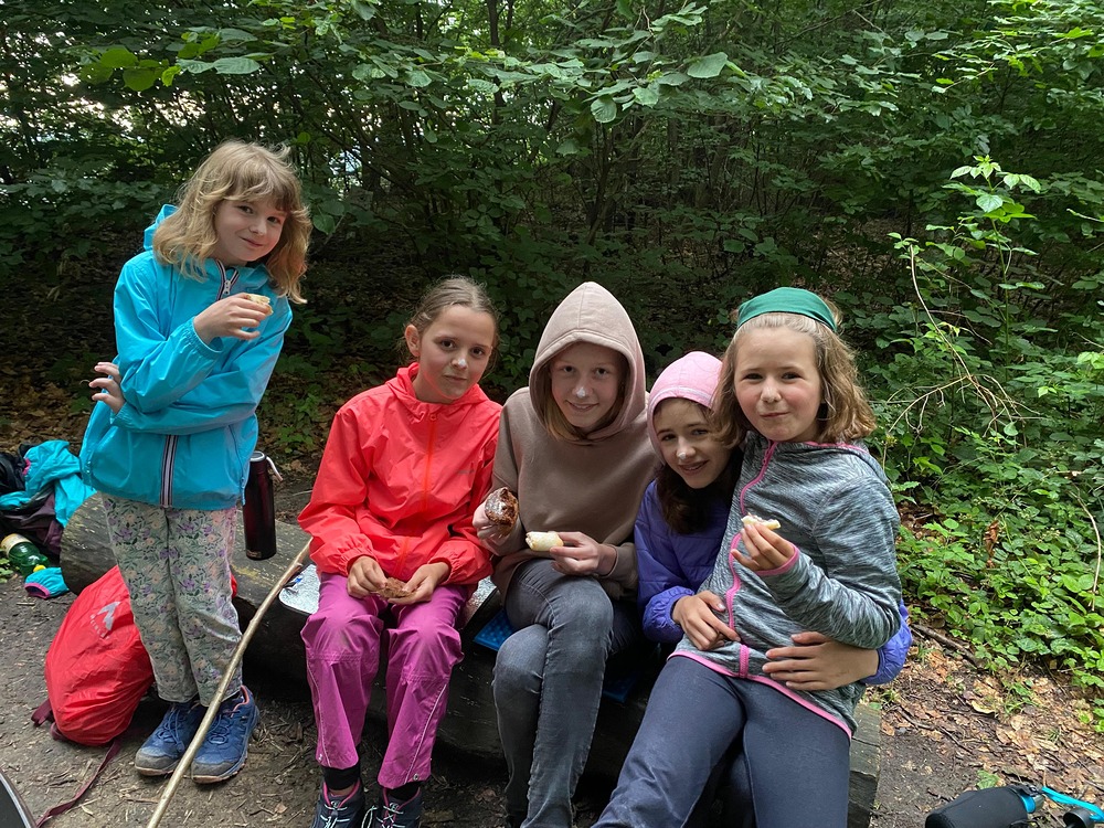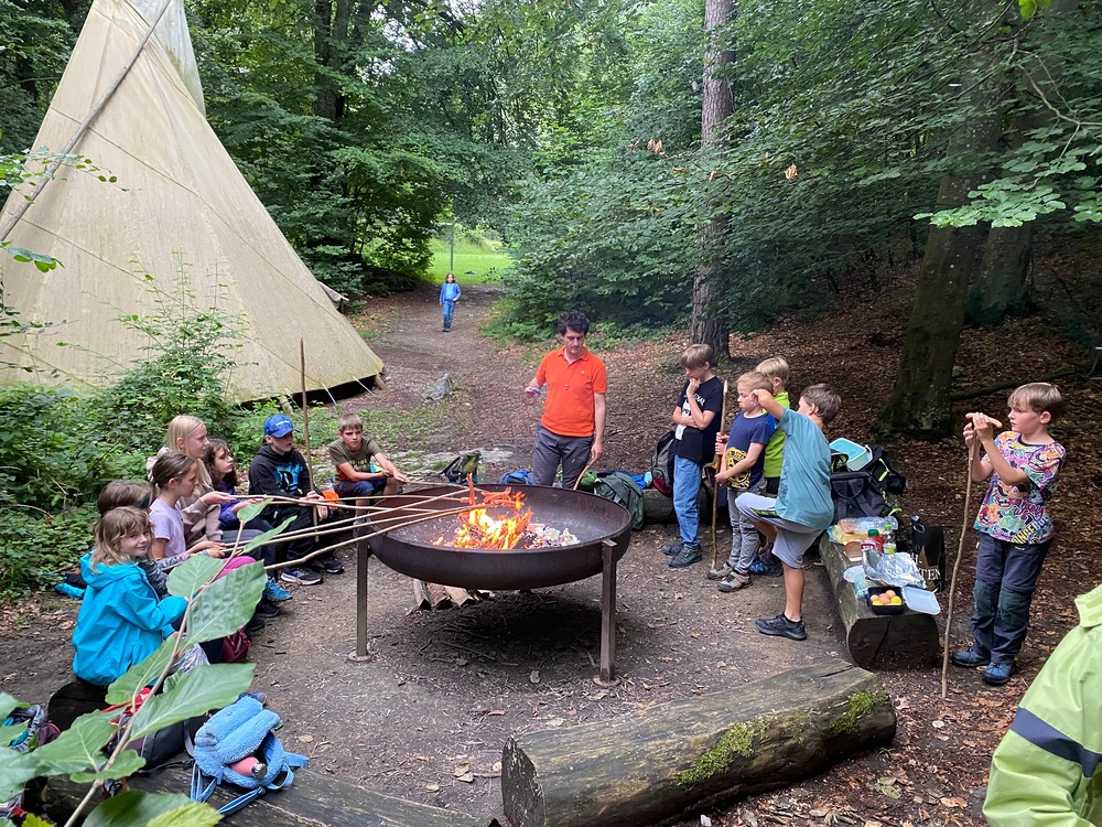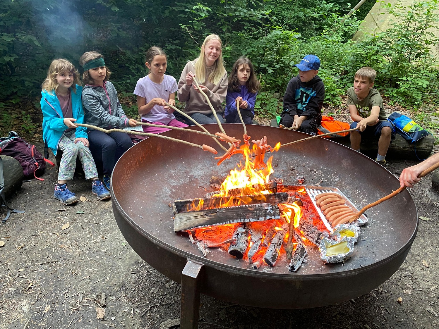 Die Ministranten und Ministrantinnen gehen ja, wenn sie bei ihrem Dienst den Raum durchschreiten, einige Meter durch die Kirche. So war es beim Mini-Ausflug kein Problem zu Fuß bis zum Bildungshaus St. Arbogast zu laufen. Ministranten und Ministrantinnen sind fit und ein paar Tröpfchen Regen können ihnen auch nix anhaben. Das Feuer muss nur genug Hitze für die Mahlzeit liefern. Es war, wie man heute sagt, megacool.