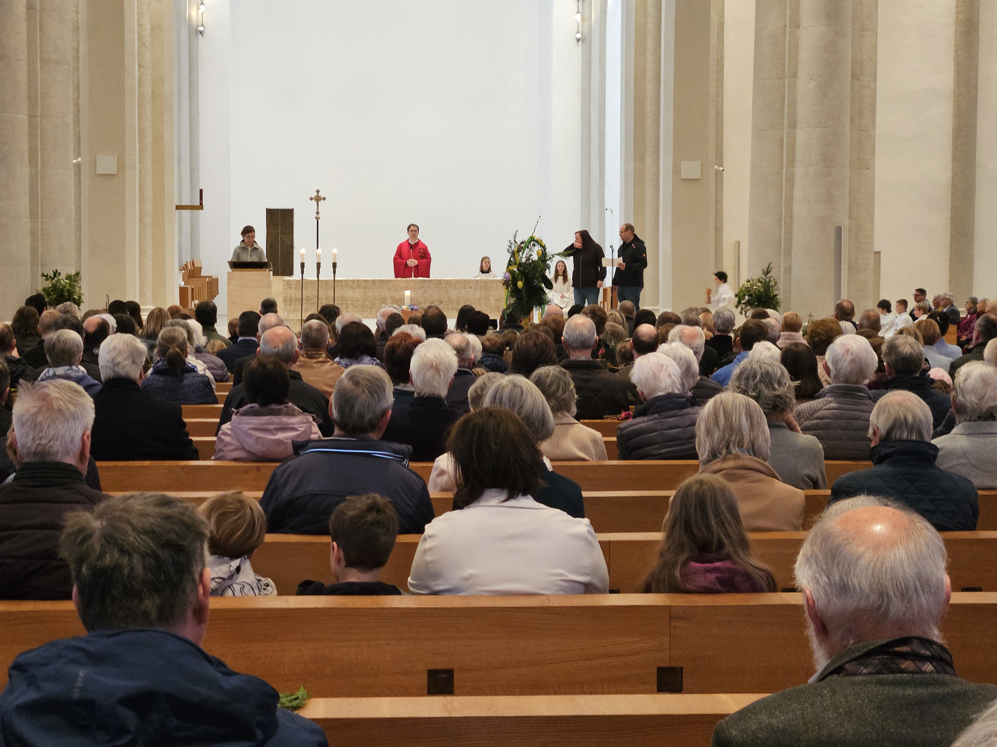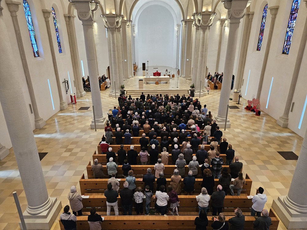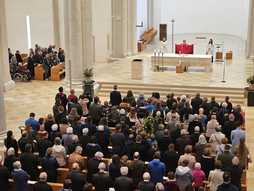 Pfarrer Rainer betont, die einzelnen liturgischen Feiern in der Karwoche sind eigentlich ein zusammenhängender Gottesdienst und lädt uns ein, daran teilzunehmen. Heute schwingen wir Palmbuschen, jubeln und ziehen freudig mit Musikbegleitung in die Kirche ein. Doch gleich hören wir die Leidensgeschichte. Verhaftung, Leiden und Tod am Kreuz führen uns direkt in den Anfang der Karwoche.