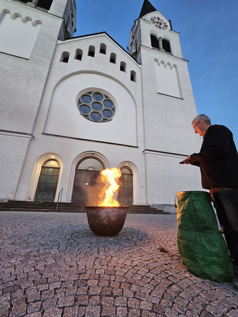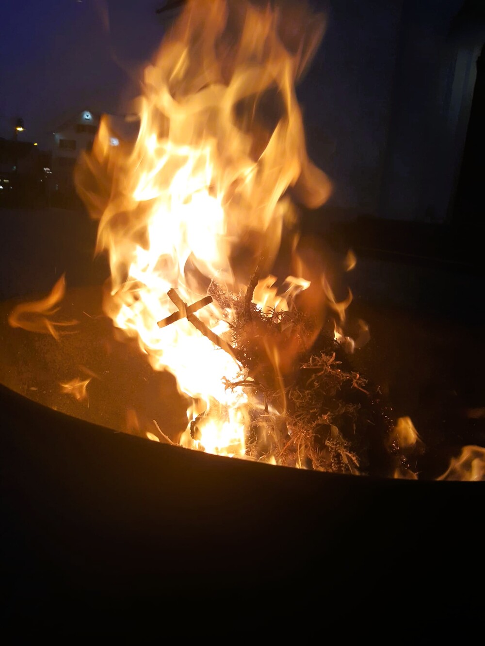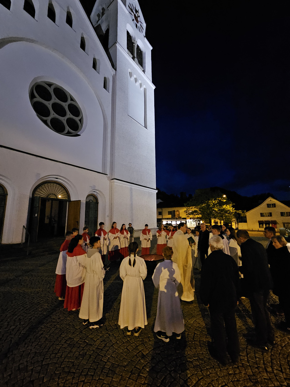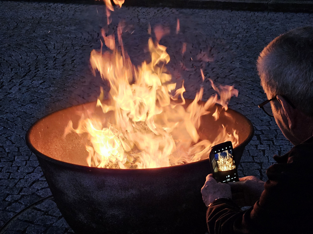 Die Feier der Osternacht beginnt mit der Lichtfeier. Das Feuer wird gesegnet und die Osterkerze angezündet.