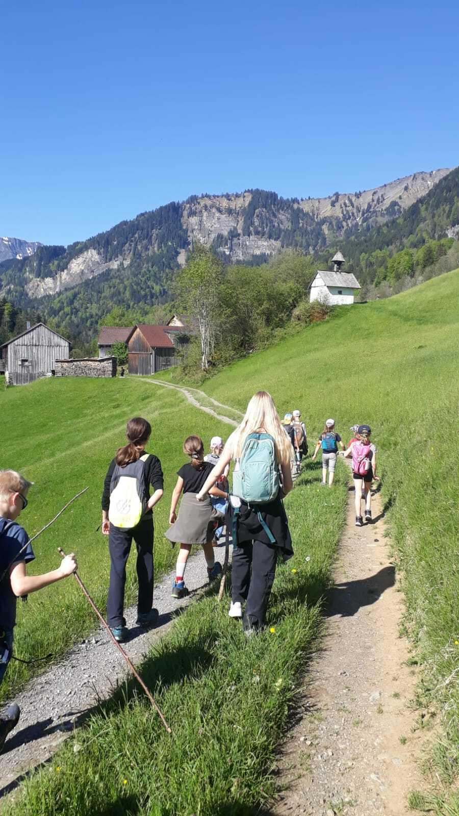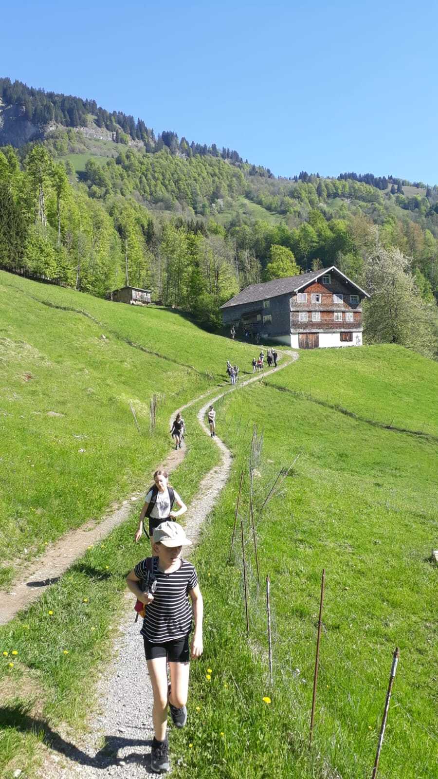 Dort erwartete Spiel, Gebet, Sport, tolle Natur und gutes Essen die fromme Rasselbande. Die Umgebung lud zu einer kleinen Wanderung zu einem Maisäß ein, die eine traumhafte Landschaft bot und manche der Minis an konditionelle Grenzen stoßen ließ.