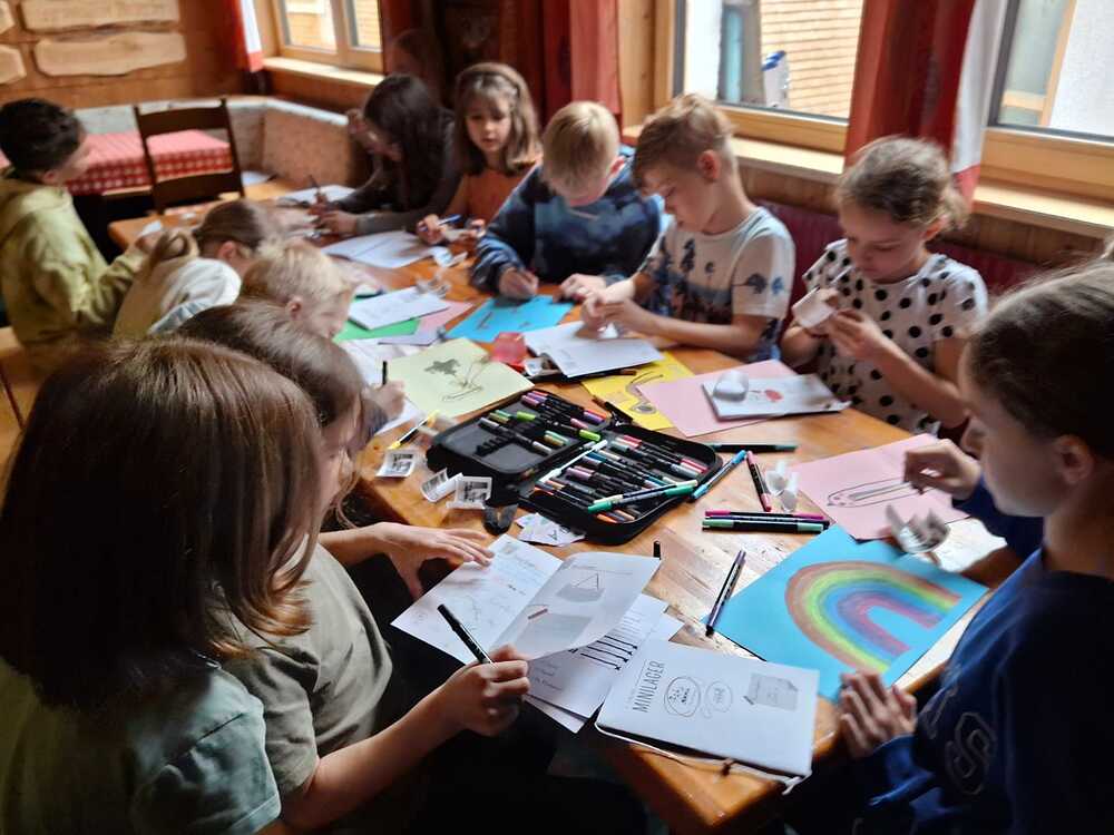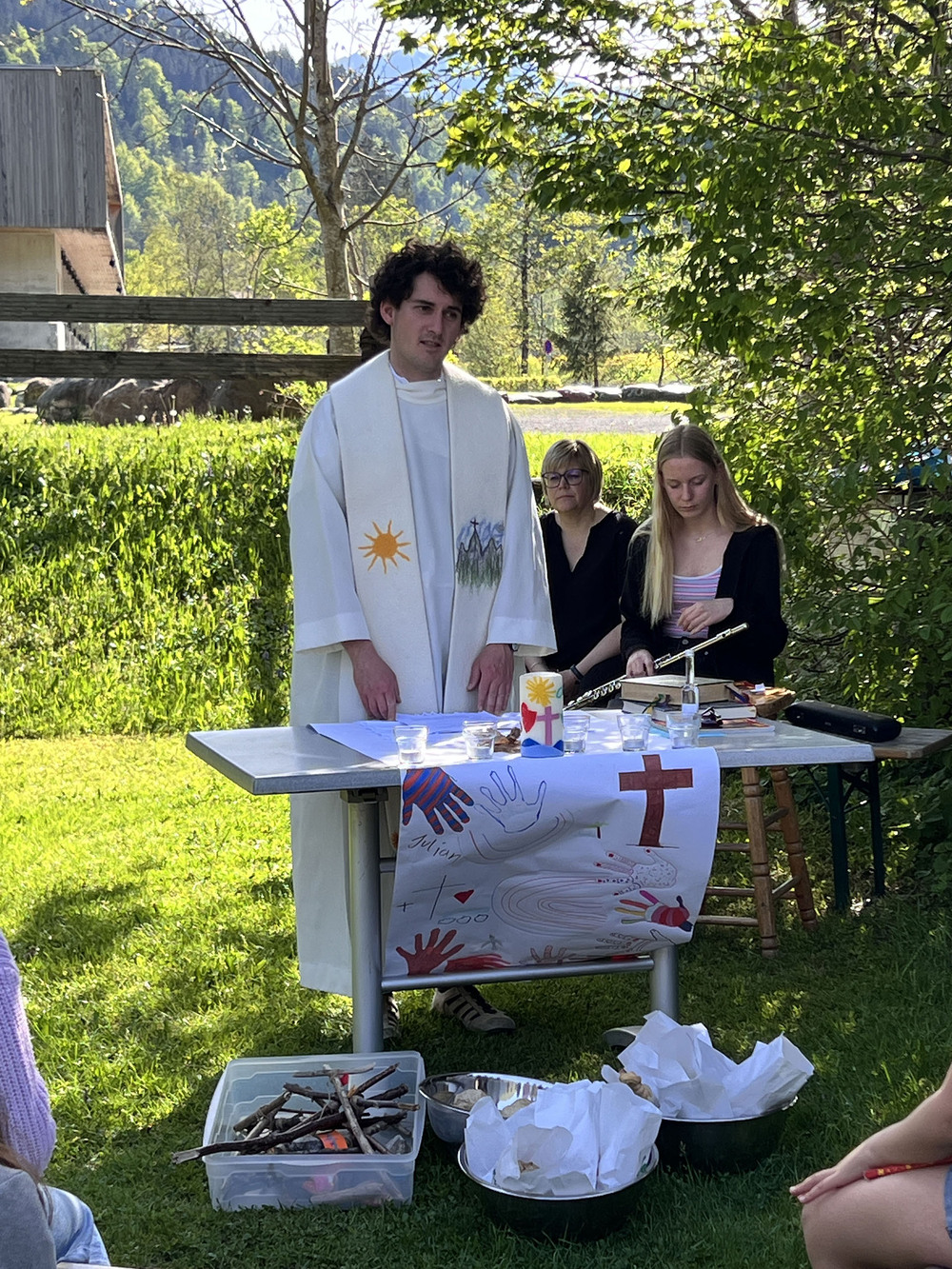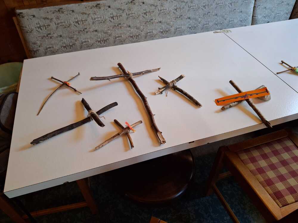 Im Ferienhaus wurden die bewegungsfreudigen Kinder und Jugendlichen bestens verköstigt. Das Wissen um Weihrauch, Brot und Messgestaltung wurde in Workshops vertieft und ausgebaut. Mit Stöckchen, die bei der Wanderung gesammelt wurden, erstellten die Minis noch Kreuze, die zuhause an die Tage in Mellau erinnern.