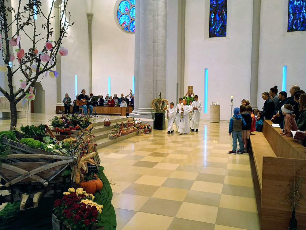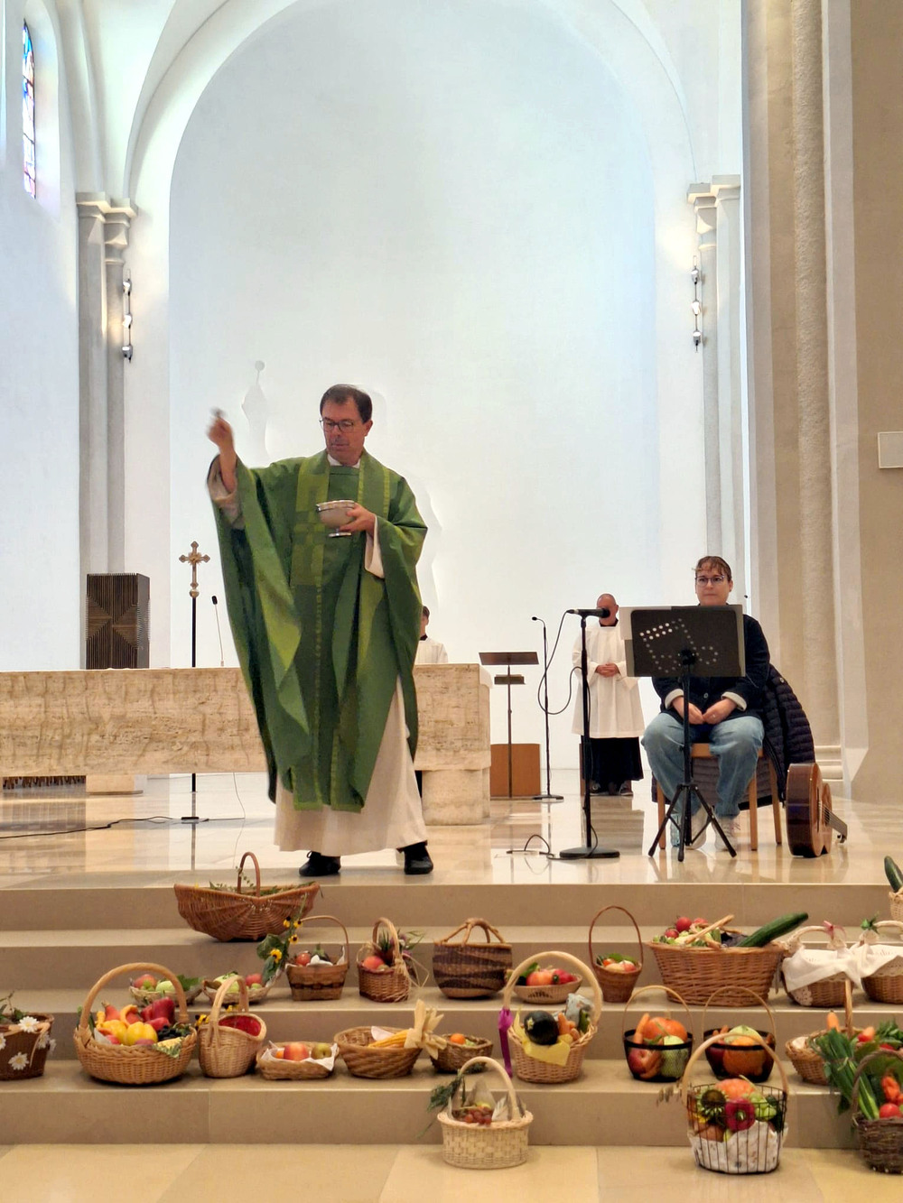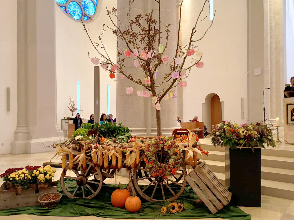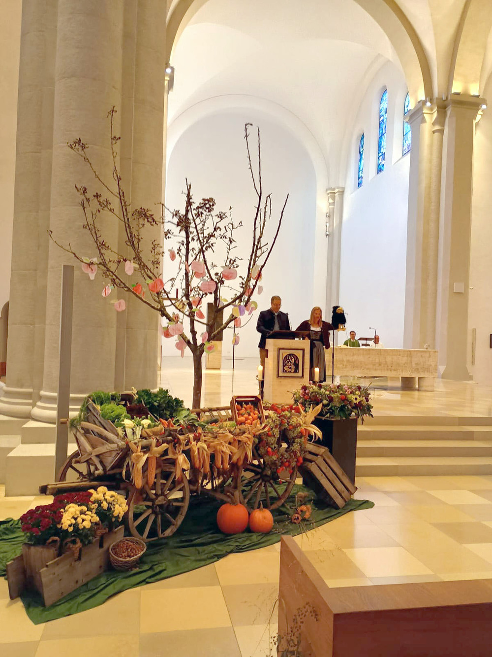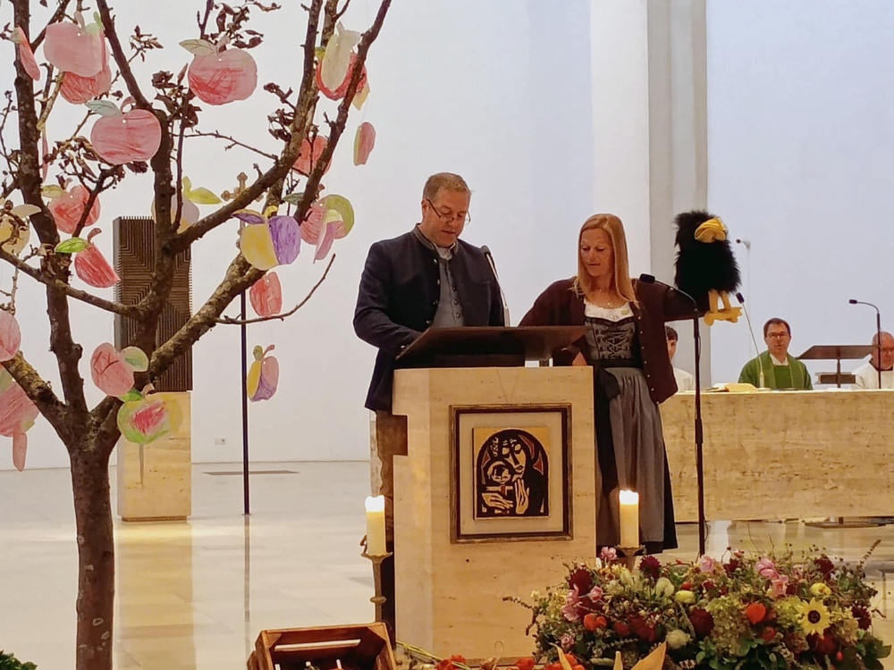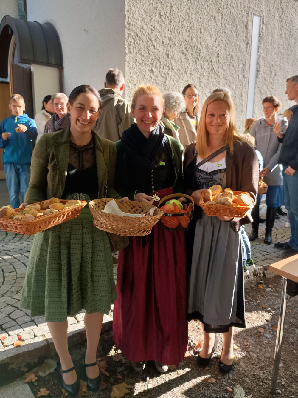 Mit großem Einsatz wirkten die Ortsbäuerinnen und der Obst- und Gartenbauverein am Gottesdienst mit. Sie sorgten nicht nur für eine wunderschöne Erntedank-Dekoration, sondern auch für Gedankenanstöße rund um Natur, Ernte und das Leben auf dem Land.