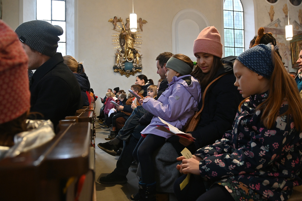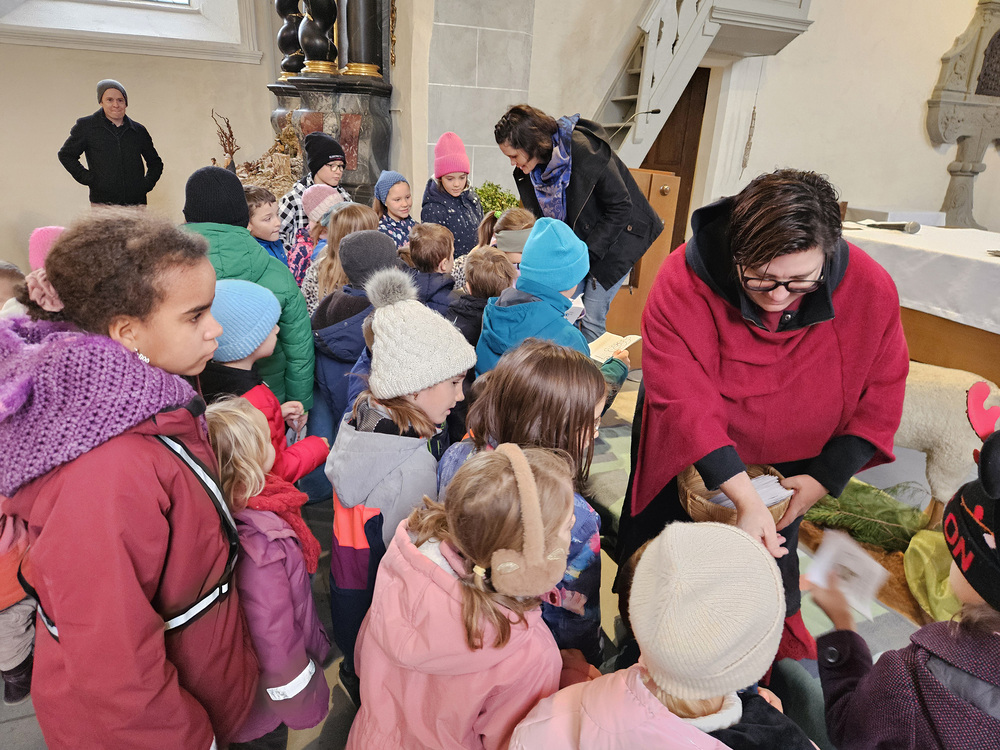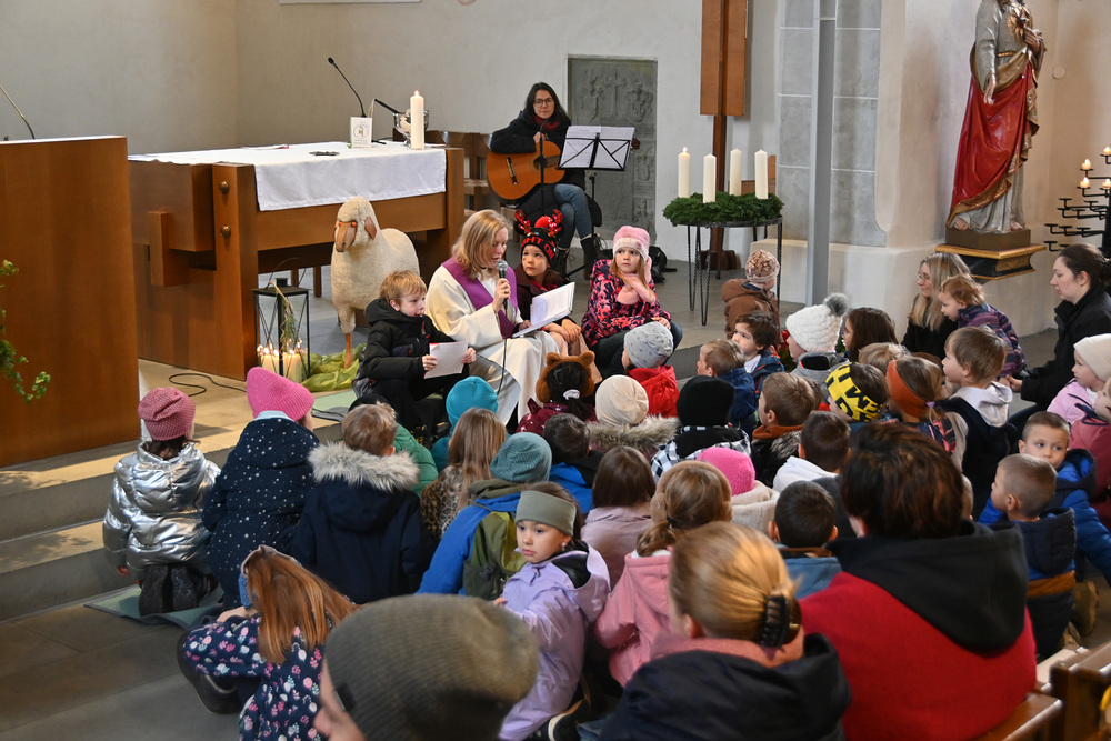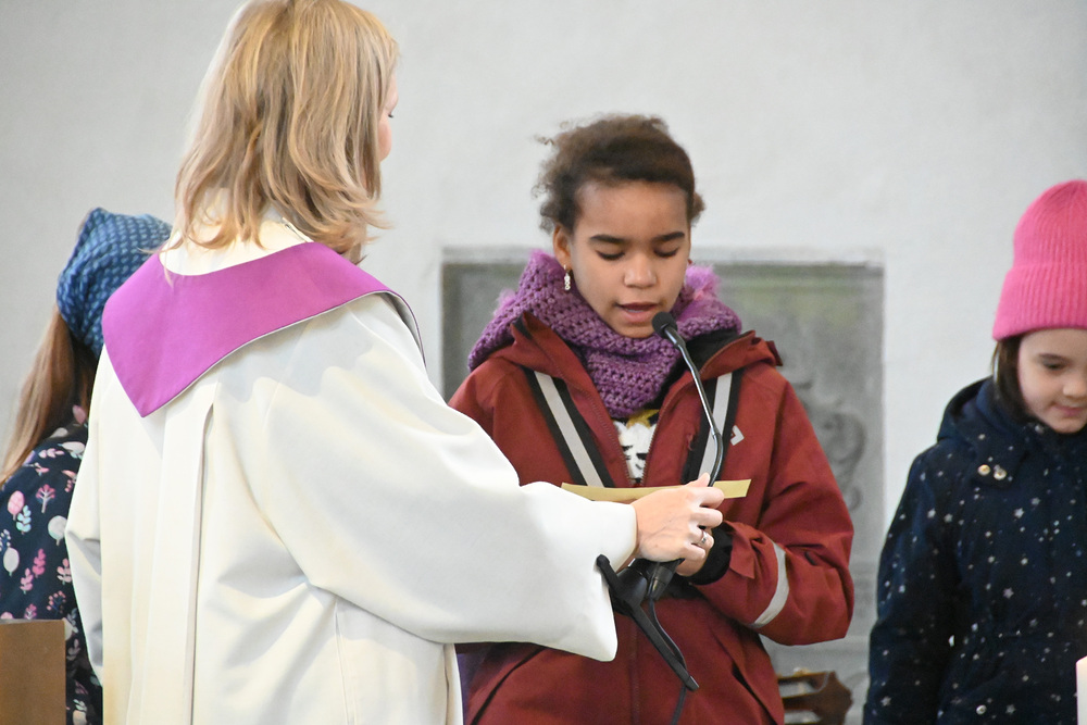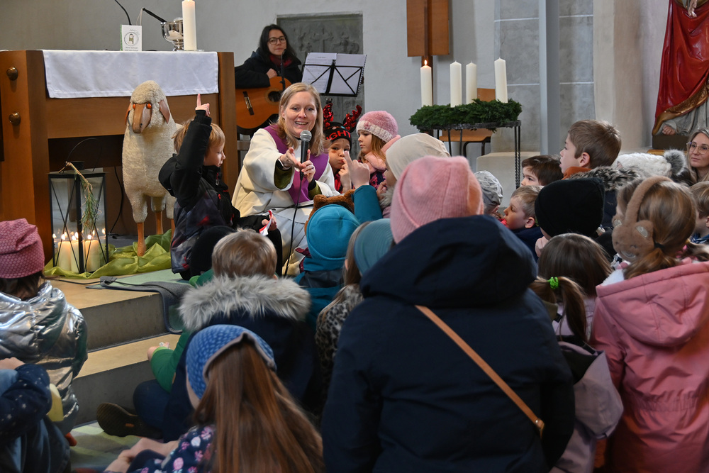 Heidi Liegel, viele Götzner kennen sich noch unter dem Namen Heidi Tschofen, führte uns durch den Gottesdienst. Heidi hat übrigens vor ca. 20 Jahren die Initiative für die Familiengottesdienste im Advent gestartet, und - wie man sieht - nachhaltig aufgebaut. Beim Gottesdienst wurde sie heute von vielen jungen Helfern und Helferinnen unterstützt. Für die musikalische Umrahmung sorgte Julia Weber mit Gesang und Gitarrenspiel. Die Frauen vom Familienmesseteam kümmern sich um alles. Das tut gut.