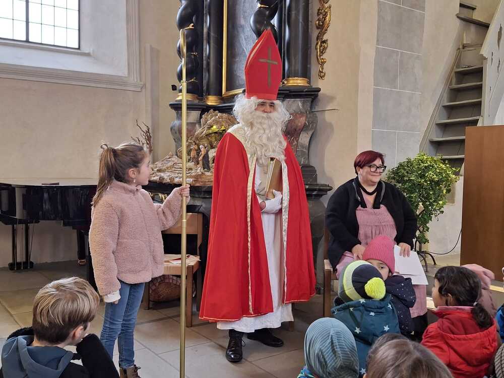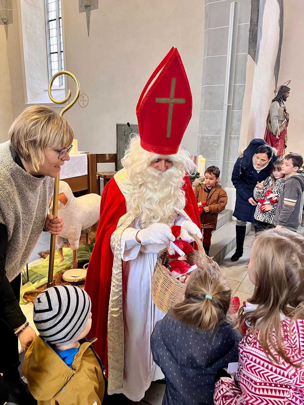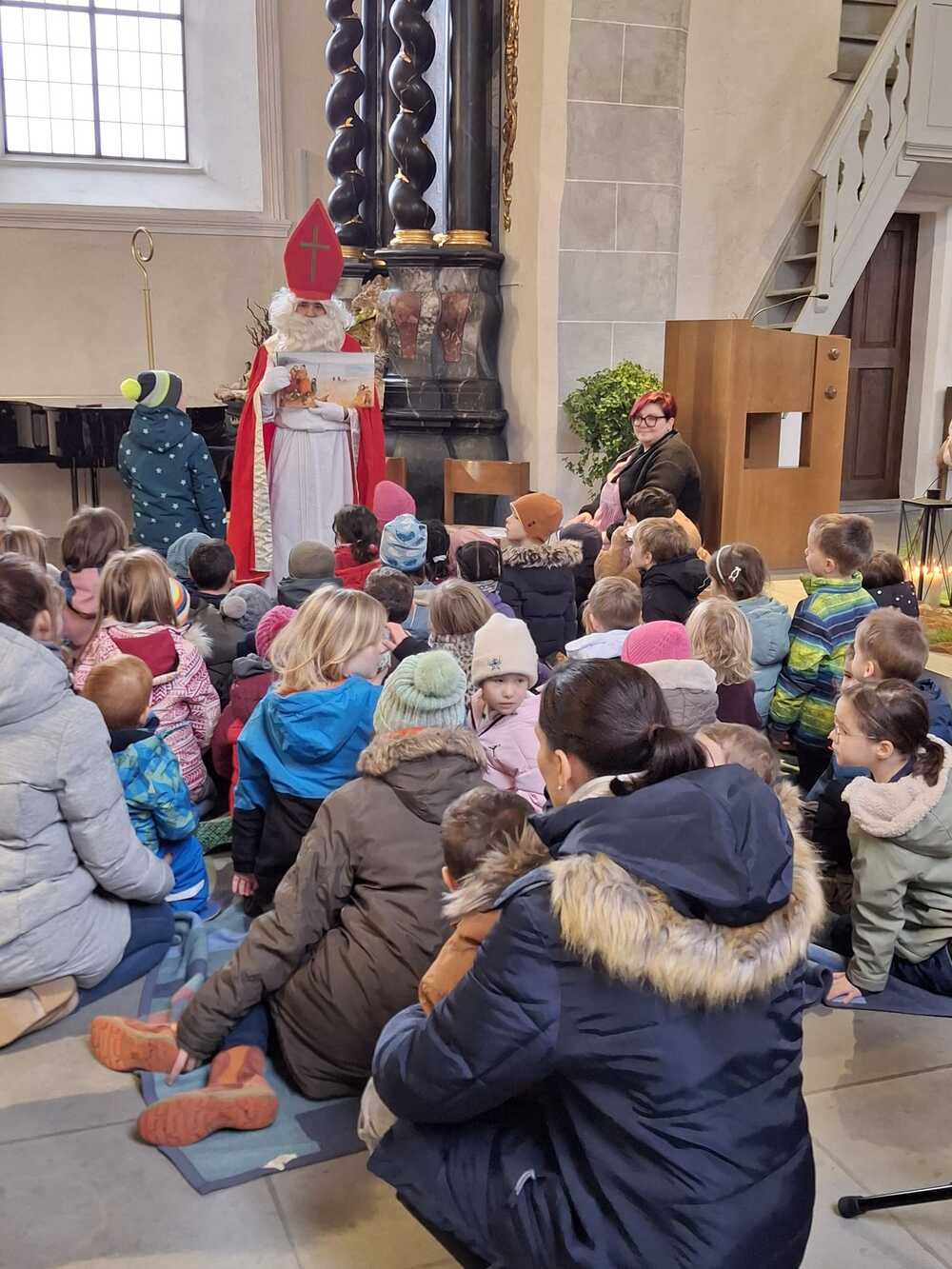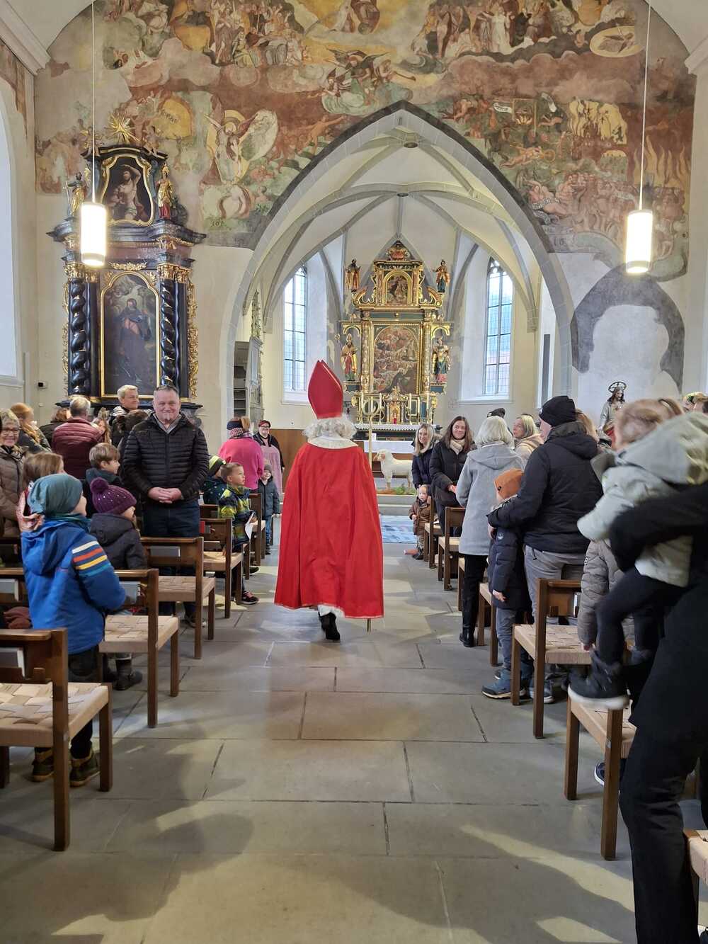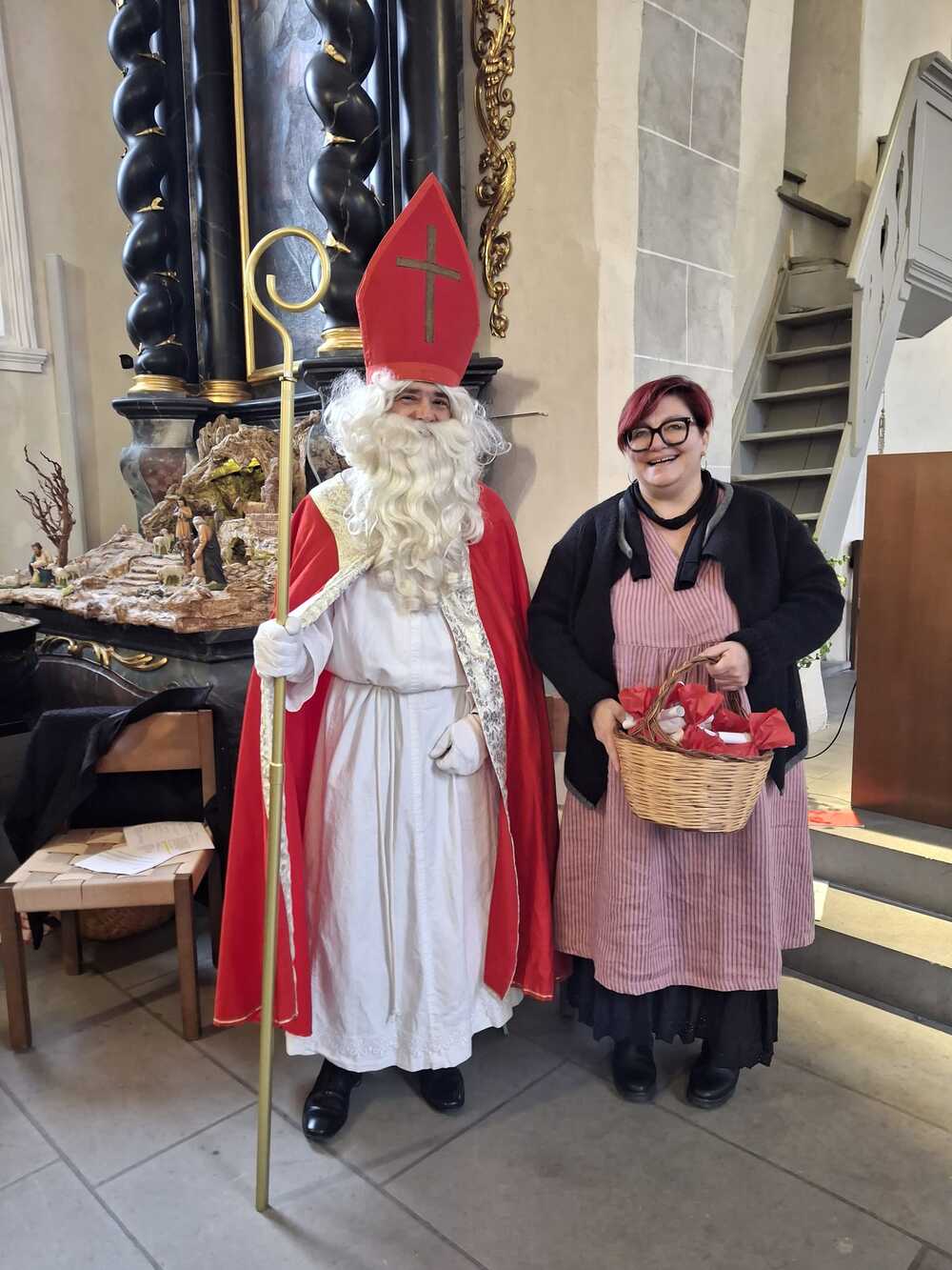 Das passt ganz gut zum heutigen Tag, denn auch der Nikolaus ist in der Kirche und verteilt Geschenke.