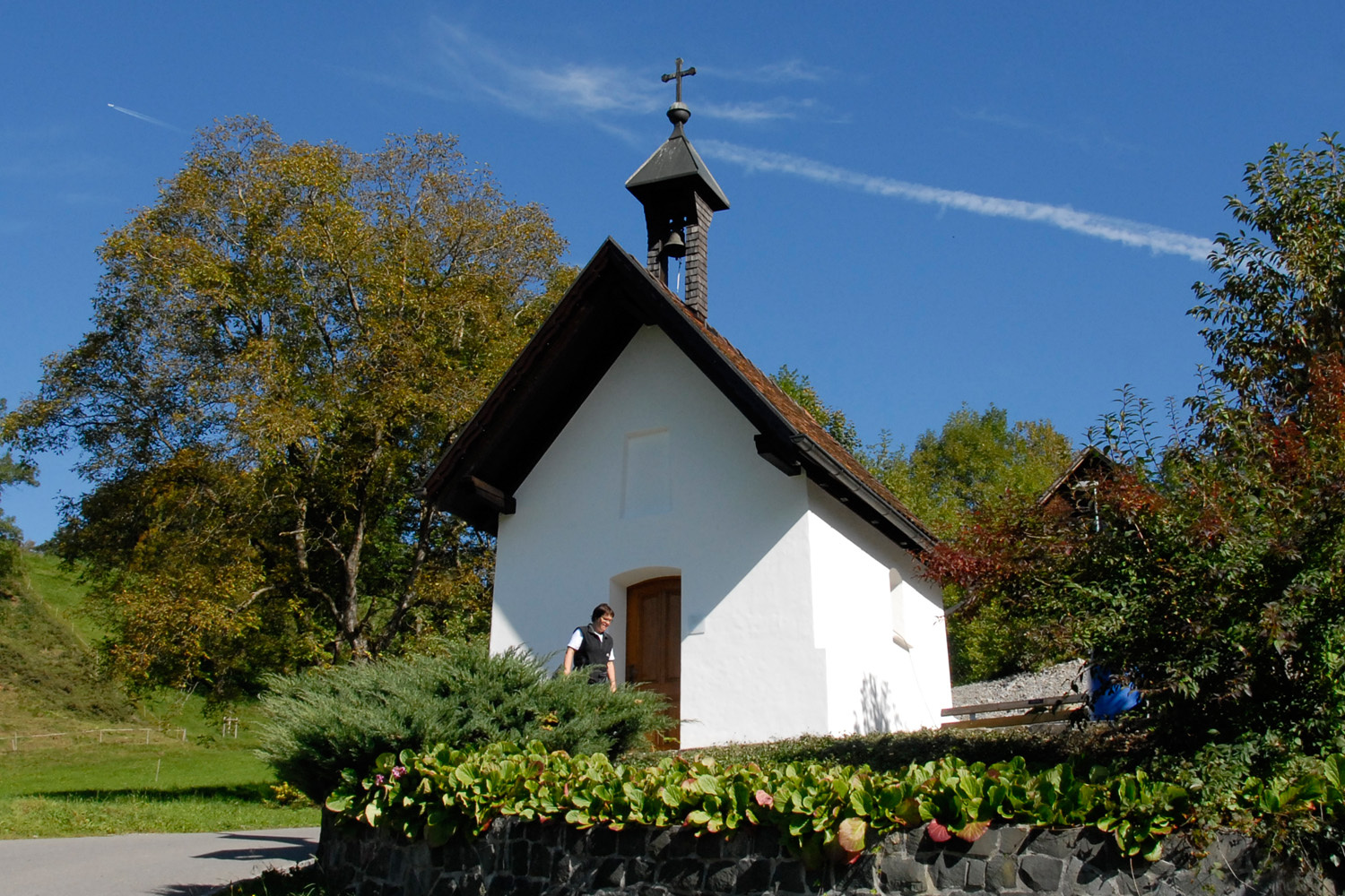 Die Marienkapelle im Oberen Berg wurde im Jahre 1780 erbaut. Die Wandmalereien im Inneren des Kirchleins sind gleich alt.