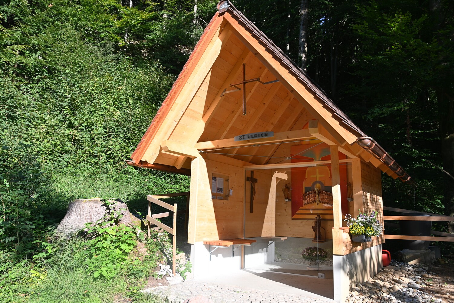 Manchmal werden Dinge einfach so gemacht. Und nun steht die neue Ulrichskapelle an einer wunderbaren Lichtung, wenn man im Götznerberg den Eichbühelweg noch zwei Kurven weitergeht in Richtung Söle.