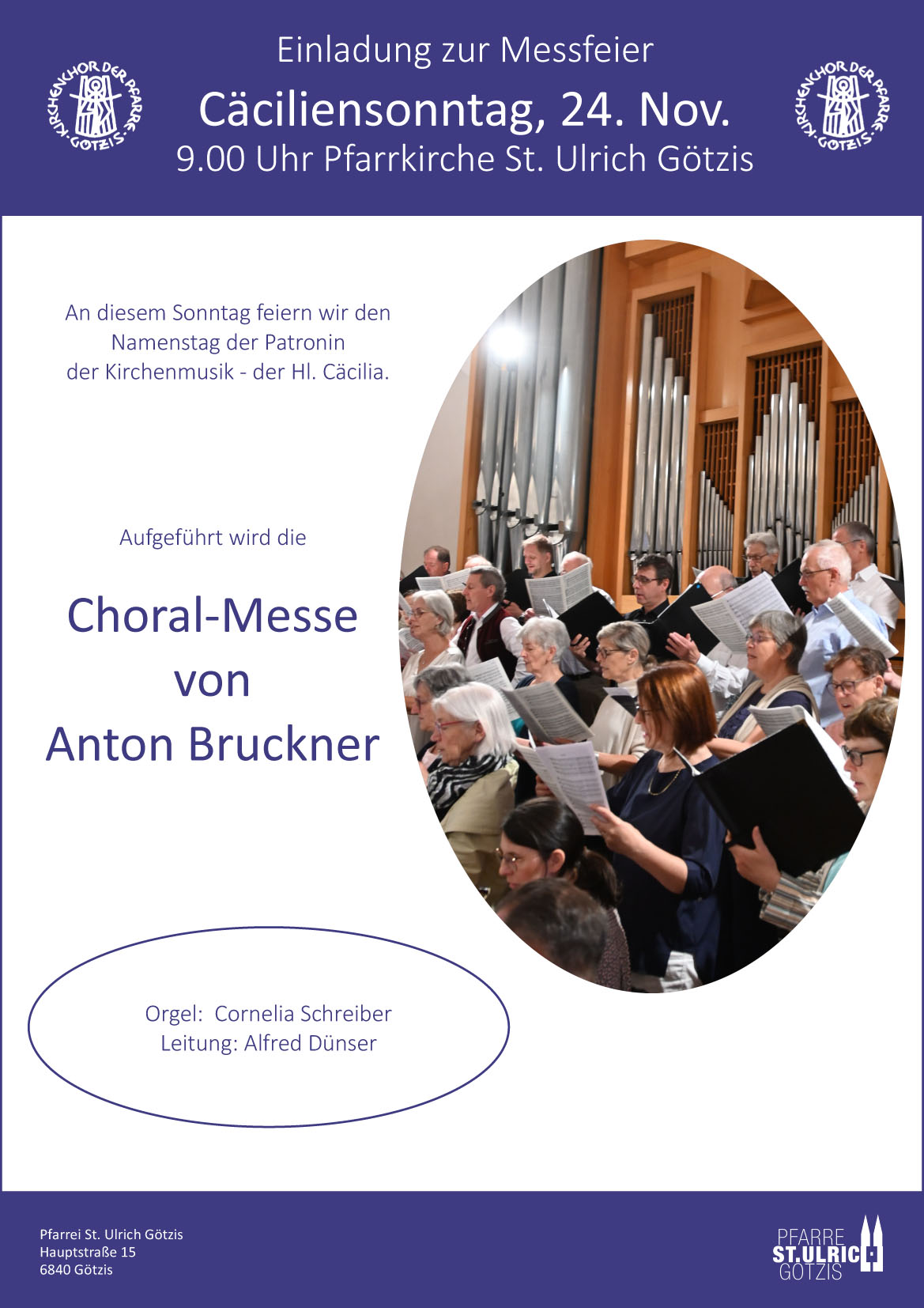 An diesem Sonntag feiern wir den Namenstag der Patronin der Kirchenmusik - der Hl. Cäcilia. Aufgeführt wird die Choral-Messe von Anton Bruckner