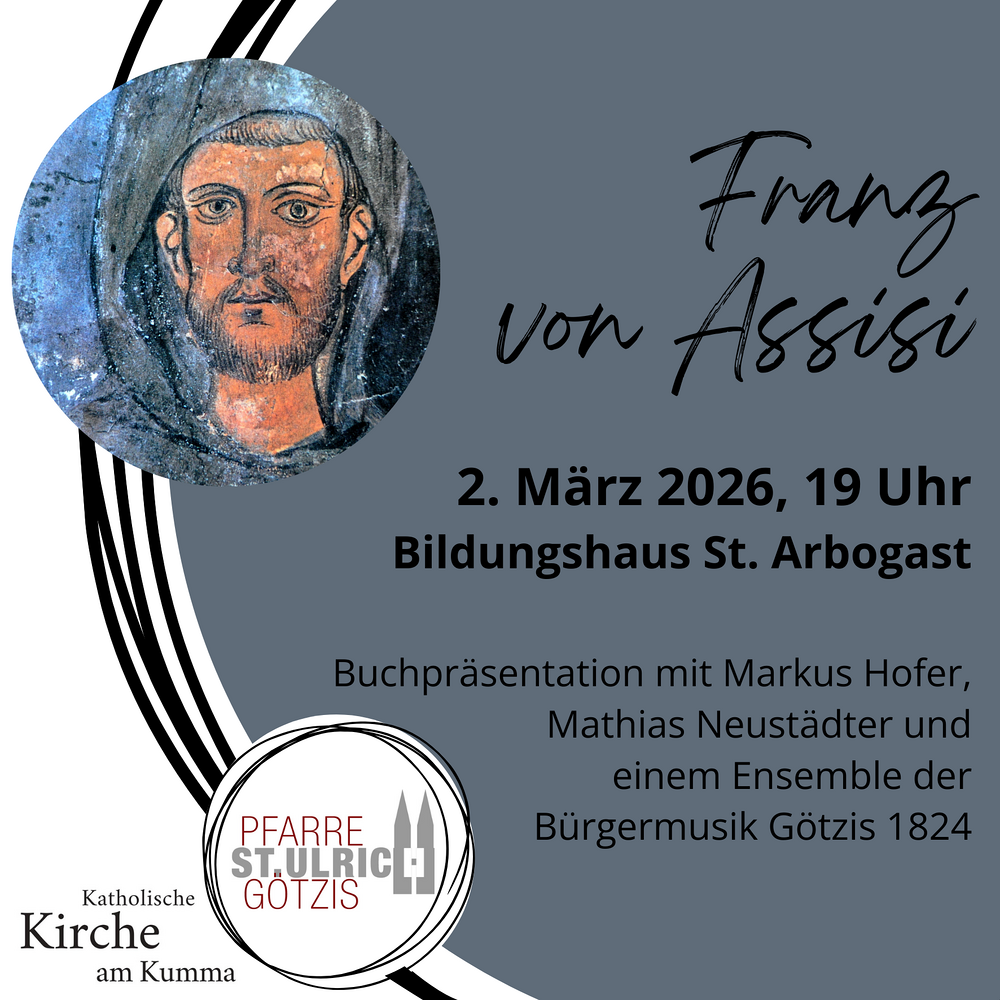 Nach Grußworten von Pfr. Rainer und der Verlagslektorin, Helene Daxecker-Okon, wird Matthias Neustädter vom ORF im Gespräch mit dem Autor das Buch vorstellen. Eine kleine Bilderreise an franziskanische Stätten und das Schlusswort des Autors, Markus Hofer, schließen den musikalisch umrahmten Abend ab.